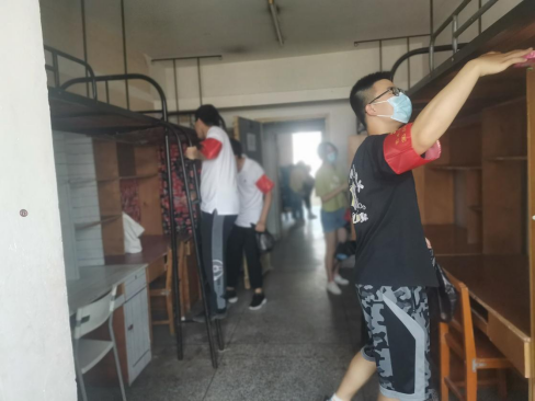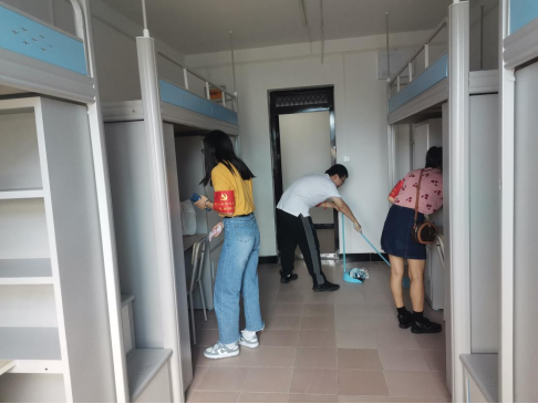 根据新生宿舍楼层的分布,员工党员分为两组开展宿舍大扫除活动。从每一个抽屉、每一个衣柜到桌面、地面,党员们干劲十足,认真清扫,规整每一套桌椅、检查每一处开关,将行动落实到细微之处。