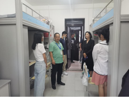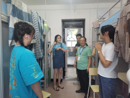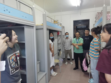 交流会结束后,公司党委书记夏志敏、党委副书记王超、2021级新生班主任及全体辅导员前往新生宿舍,走访慰问新生整体生活情况。