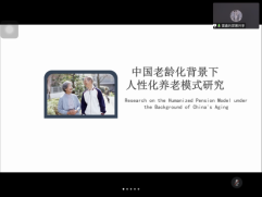 最后一位主讲人雷鑫发表了主题为幼老同养可行性分析的分享报告,分析了目前我国人口老龄化的现状,介绍了不同种类的养老模式,以武汉童心苑养老院的经营模式提出研究适合我国国情的养老模式,得出了五个人性化养老模式的原则。