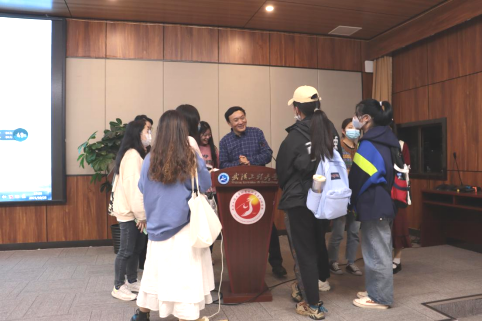沿着历史的发展轨迹,余隋怀教授在列举由秦至清的各个时代的优秀发明以及文物的同时,巧妙的穿插了古典诗词、古典音乐和古代艺术品,从中华文物鉴赏的角度以更加通俗的方式去理解中国文化,并运用多元化现代新媒体手段展现了中国传统文化的精髓,深刻剖析了在现代社会人们对于传统文化的需求。三个小时的讲座,现场座无虚席,引人入胜。他最后说到,历史风尘远去了,留给我们的却有无数的感动,中华文明是四大文明中唯一延续至今的文明,中华文明曾拥有非常辉煌的时代,我们正在复兴,必然会达到新的顶峰。讲座之后,不断有同学们涌上讲台,虚心求教,他十分耐心细致地为同学们答疑。