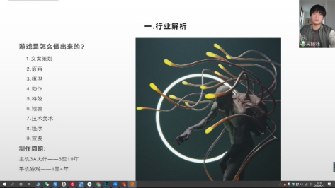 在讲座中,吴际涯作出分享主要从行情解析,原画介绍,个人经历,大学规划,行业指南五个方面给同学们分享以及扩展知识面。并且运用亲身经历希望同学们能够多的把时间利用在培养自己的专业技能和相关的知识上,从现在开始努力也不算太晚。