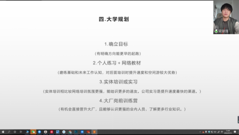 在现阶段学习方面上,专家们也帮助同学们排了许多的坑,同时建议大家前期线下实体班,中期参加训练营和实习(线下选择实体班前可以去淘宝等买一些教程学习,后期抓准校招机会进入大厂。校招与社招的差距很大。)