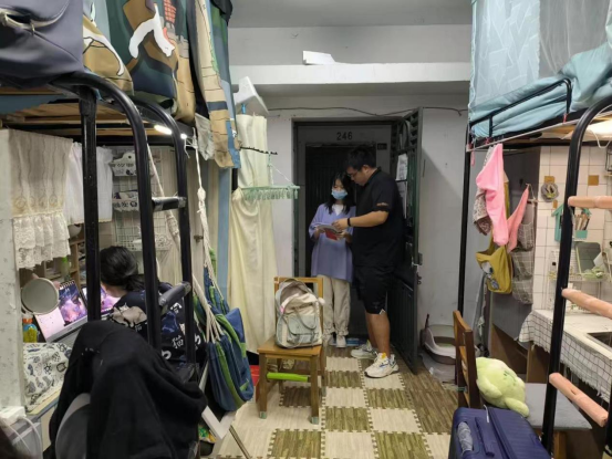8月28日晚18时,党委副书记王超带领全体辅导员来到员工宿舍区,检查员工宿舍返校入住及运行保障情况,深入来了解宿舍安全和疫情防控工作实施情况。