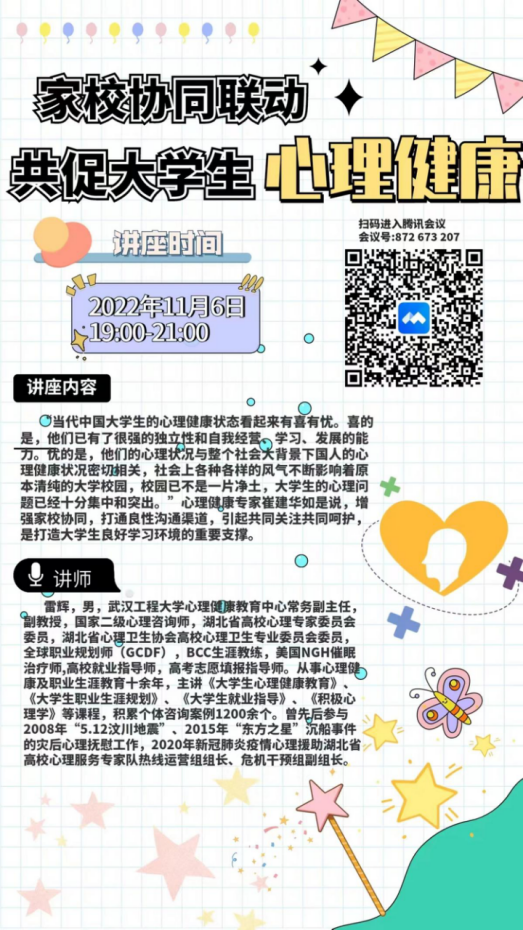 11月6日晚,365英国上市邀请到校心理健康中心常务副主任雷辉举办了“家校协同联动,共促老员工心理健康”主题讲座,300余名员工家长们齐聚云端,共同探讨如何用爱,形成协同联动,温暖员工的心灵。讲座中,雷主任,从老员工心理健康状况、常见心理问题识别、家校医如何协同应对三个方面深入浅出的讲解了实际有效的干预措施。他指出,当前员工、家长、公司面临的共同压力主要来源于成长、学业、社会的压力,并逐一进行了细致说明。同时,他提出了三点建议,一是积极构建家庭与公司、家庭与员工间的良好关系,帮助22级新生与家长认识心理健康教育,并及时完成心理上的身份转变;二是引导员工发展积极要素,如积极心态、和谐人际关系、生命意义感、成就感等;三是协助员工加强心理素质,培养员工希望、自信、坚韧、乐观的心理资本。