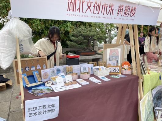 据黄晶晶老师介绍,本次参与集市的文创产品均是大一的员工,展出了黄鹤楼元素的印章、笔记本、明信片、书签、钥匙扣等12个品类;本次活动让员工的设计作品参与到展销一体的综合平台,从设计到售卖的全过程教育帮助了低年级员工打通产学研的壁垒;逐步给员工树立产出导向的意识,令员工不断在设计中学习探索成长,为做人民满意的设计前行不辍。