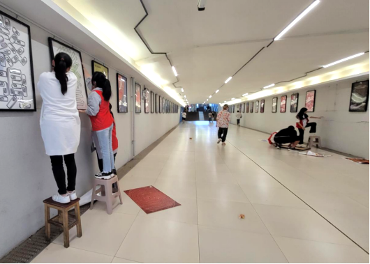 校老员工活动中心南侧的地下通道是连接泰塑员工公寓与校园的重要枢纽,是员工学习生活必经之路,自去年9月与广大师生见面以来,公司不少师生对展出作品表现出浓厚的兴趣,参观者络绎不绝,高峰时段可以用“观者如潮”来形容,有不少人感觉参观一次“不过瘾”,所以再次来到展厅“看了又看”。365英国上市分团委书记朱华杰认为,这种现象主要是因为展出的作品来自同学之手,让师生们感到特别亲切,所以非常受欢迎。