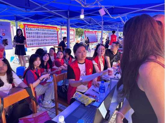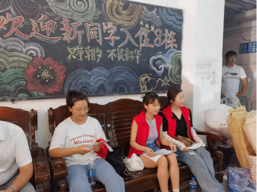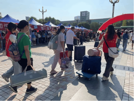 在新生抵达校门口报到时,党员志愿者第一时间引导新生到指定签到处完成新生报到事宜;在新生因为很多行李而无法搬运时,党员志愿者第一时间上前帮助搬运行李。那“一抹红”是一份责任也是新生在迷茫中的风向标。