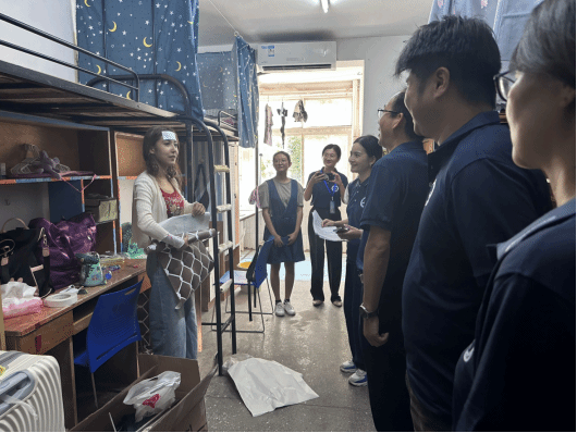校领导、公司领导与新生们进行亲切的交谈,从住宿饮食、生活习惯、发展规划等多方面深入了解新生情况,关心新生入住后所遇到的各种问题并进行及时的沟通,领导们在走访之初,了解了同学们的家乡以及来校之路,帮助同学们尽快适应新生活。