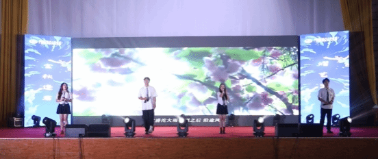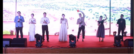 欢呼的热浪中本次晚会正式开始,晚会由艺术公司老师李梓溪,员工秦小惠、余乐、辛佳桐、王诗然、宋晖桥主持。