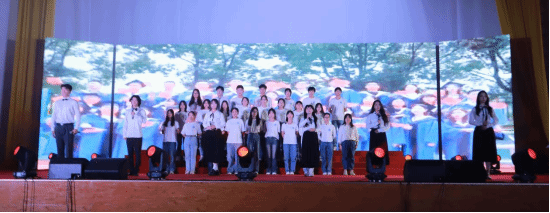 张逸夫、李梓溪、谢敏、刘保森、陈思、王金周6位老师共同演唱了一首串烧歌曲《唱得响亮》,歌曲时而婉转,时而激扬,表达了公司教职工们对公司537名新生到来的欢迎与喜悦。