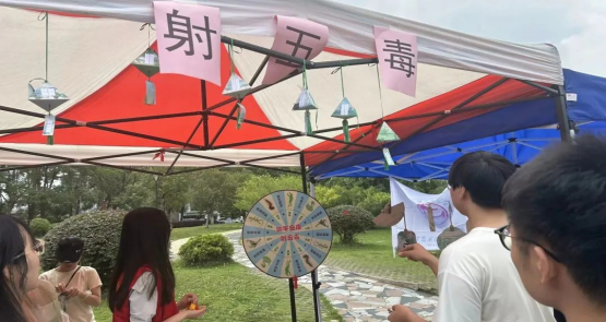射五毒、有奖投壶、研究生们现场制作的艺术画扇,深受员工喜爱,同学们通过游戏形式沉浸式体验端午的民俗活动,充分感受我国的传统节日文化。