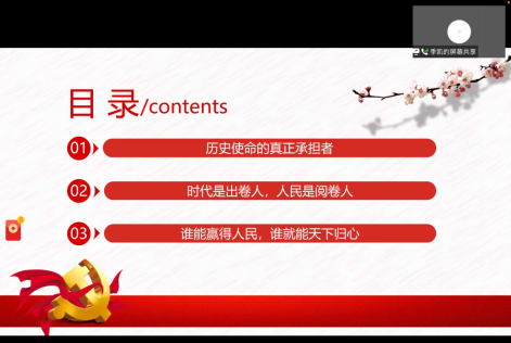 季凯老师本次授课主要从三个方面:历史使命的真正承担者、时代是出卷人,人民是阅卷人、谁能赢得人民,谁就能天下归心。