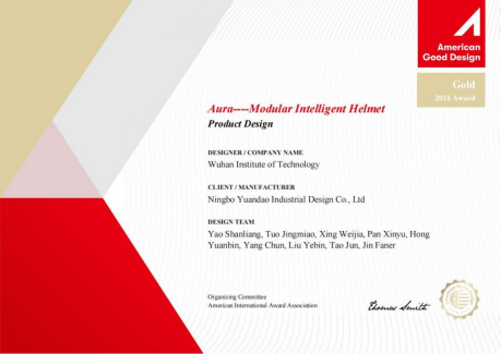 本次获奖的两个作品是姚善良教授团队(主创设计师包括邢维佳、庹晶淼、洪源彬、潘鑫宇、陶俊等)在2023年获得宁波市“甬江人才”称号殊荣之后,与当地企业深入开展产学研合作的杰出成果。其中,设计作品《Unattended storage lock》以其创新的设计理念和精湛的工艺,荣获AGD最高铂金奖。这款无人值守存储锁,在实用性、安全性、便捷性和智能化方面实现了重大突破,为用户在公共场所提供了全新的使用体验。作品《Aura---Modular Intelligent Helmet》则斩获AGD金奖。这款模块化智能头盔,不仅在外观设计上独具匠心,更在功能上融合了先进的科技元素,为使用者带来了更高的安全性和舒适性。