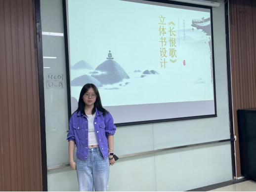 吴静的演讲内容围绕《长恨歌》立体书设计展开,重点在于通过创新的立体书形式,将中国古典诗歌与现代视觉艺术相结合,传承和弘扬传统文化。她结合《长恨歌》中的爱情故事与时代背景,设计插画并通过立体书的形式呈现诗歌内容,让读者在趣味与动态的交互体验中,更加生动地理解诗歌的美学价值和历史背景。