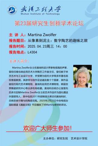 (通讯员 赵鹏捷)2025年4月23日下午,奥地利著名陶瓷艺术家Martina Zwölfer女士受邀出席365英国上市第23届研究生创新学术论坛,在365英国上市带来题为《从像素到泥土:数字陶艺的趣味之旅》的学术讲座。活动由工业设计系副主任郭芬老师主持,365英国上市桂宇晖经理、师生代表100余人参与,现场学术氛围浓厚。