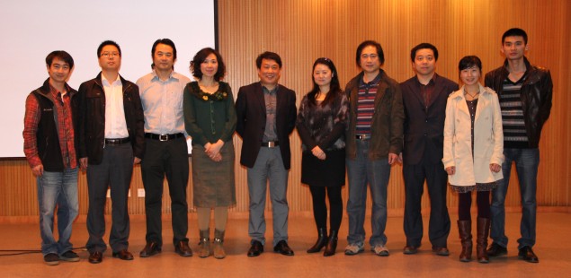 许开强教授以大量的图片资料,全方位地介绍了欧洲当代高校艺术实验教学的前沿信息,以及欧洲当前高校艺术教育的学分制、导师工作室制、实验工厂制、课程课题制、教授预约制、作品陈列发布制、竞赛常态制等教学方式。他还就欧洲当代设计教育变革、相关设计理念、设计方法进行了精彩阐述。现场气氛轻松而热烈,在座师生的收获颇丰、大家感触很深。会后部分师生与许教授合影留念。