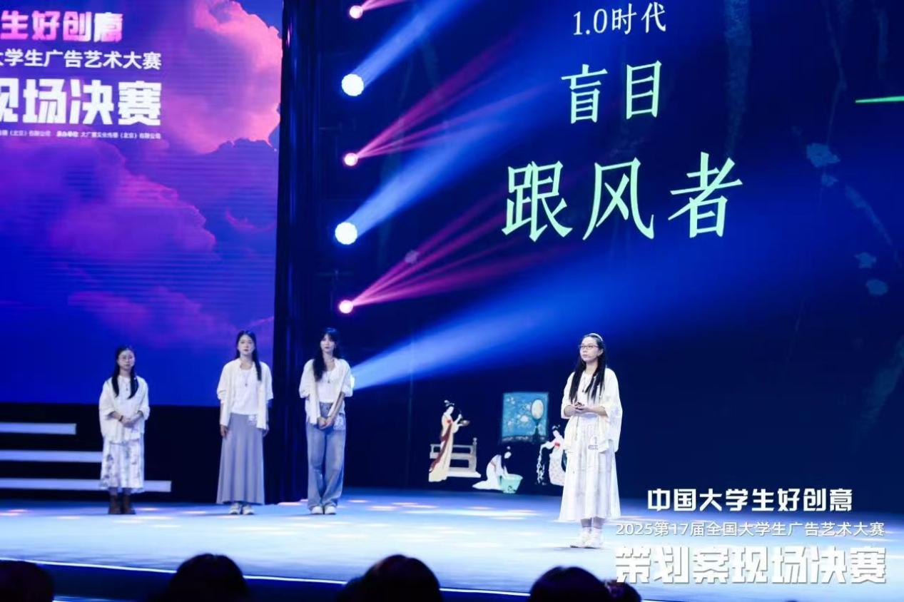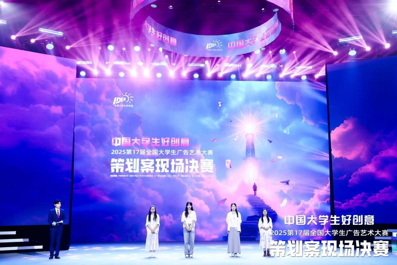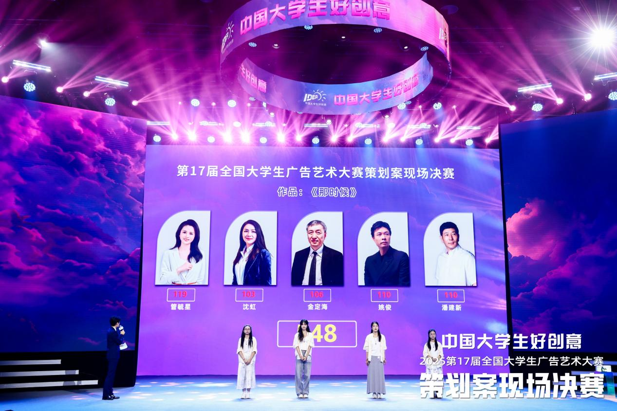 9月13日,北京东亿天弘1200㎡的演播大厅内,气氛紧张而热烈,14支入围团队在这里展示他们的创意与智慧。现场决赛采用现场提案的方式,模拟广告公司向客户提案的真实场景。各团队需要面对评委和观众,全方位展示自己的创意理念和营销策略,并回答评委即兴提问。在短短几分钟的现场提案展示中,谌颖、尚梦瑞、张宇婷、曹安琪团队以饱满的热情完成提案陈述,逻辑清晰地阐述策划思路与创意优势。面对评委的即兴提问,她们沉着冷静、对答如流,凭借扎实的专业功底和出色的现场表现,赢得了评委们的一致认可。