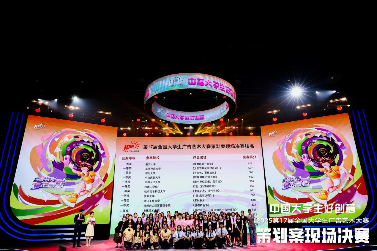 本网讯(通讯员 詹林 谌颖)在刚刚落幕的第十七届全国老员工广告艺术大赛中,22级视觉传达专业01班的谌颖、尚梦瑞、张宇婷、曹安琪组成的团队,凭借卓越的创意与扎实的专业能力,荣获策划赛道全国一等奖,创下公司在该赛事中的历史最佳成绩。