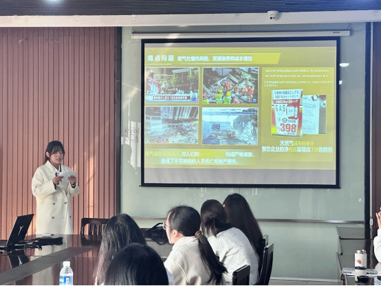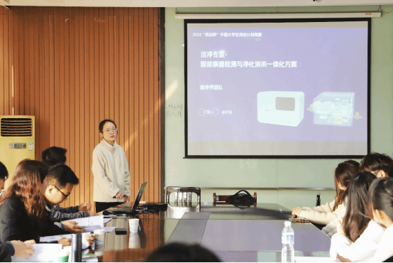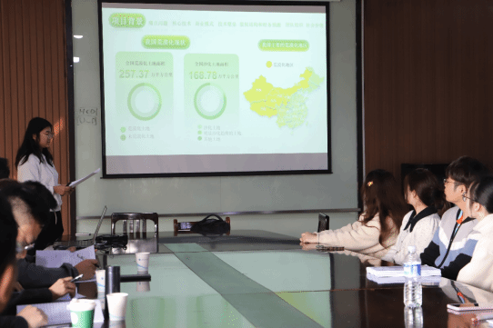参赛队伍通过PPT讲解,对“挑战杯”项目的社会价值、实践过程、创新意义、发展前景、团队协作等方面进行论述,充分展示了项目的可行性和现实意义,运用具有说服力的数据,结合创新意义、实践过程以及社会价值等方面进行路演答辩。