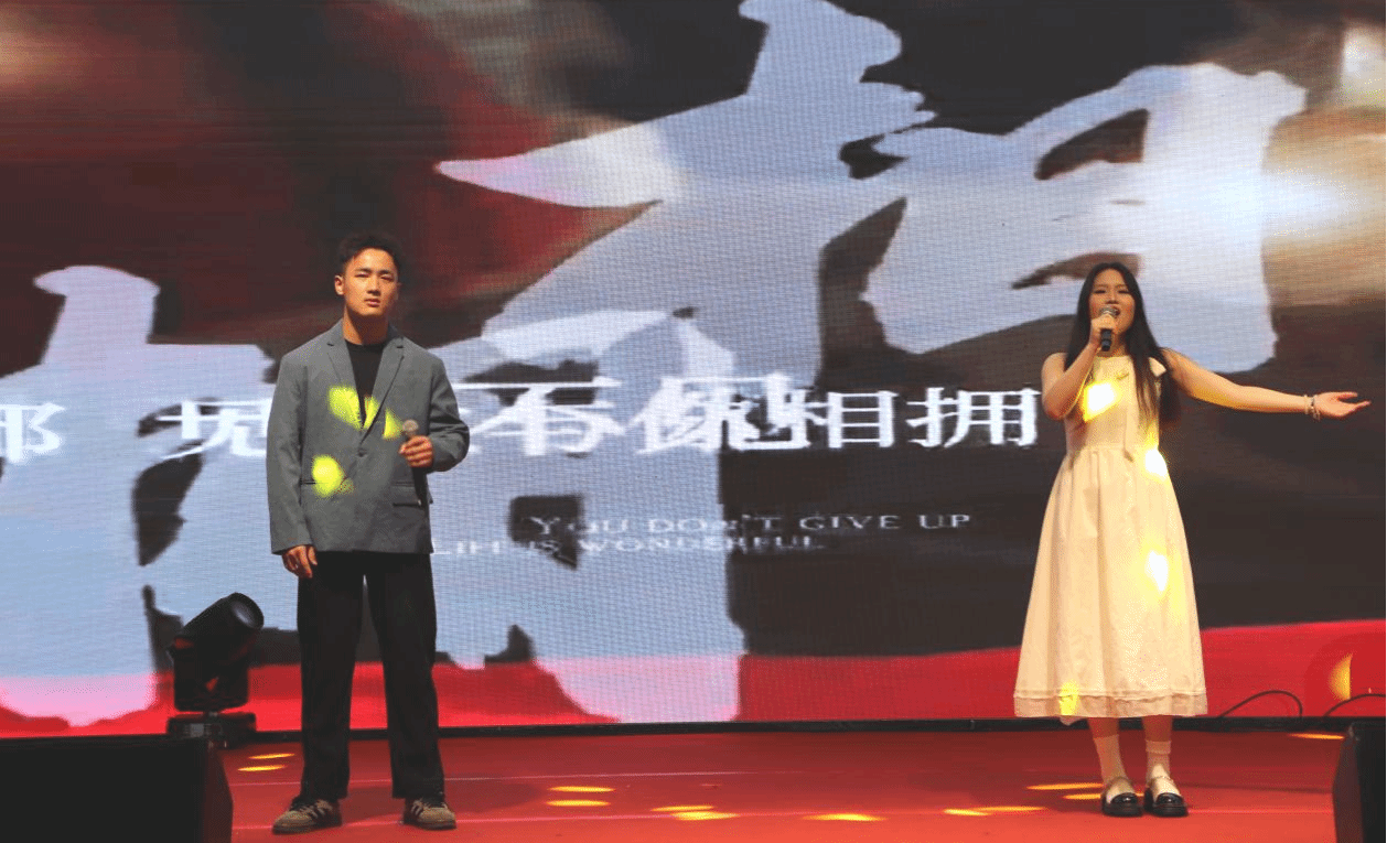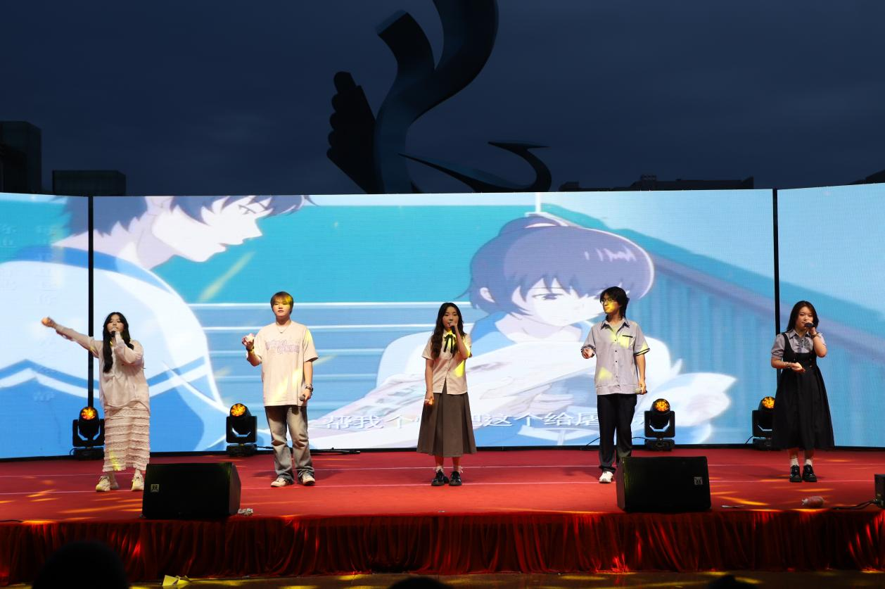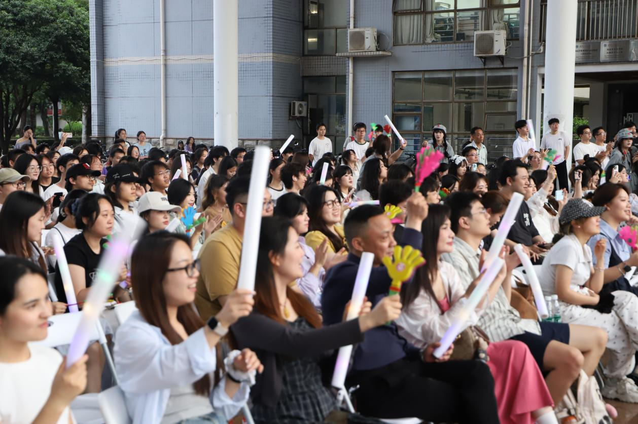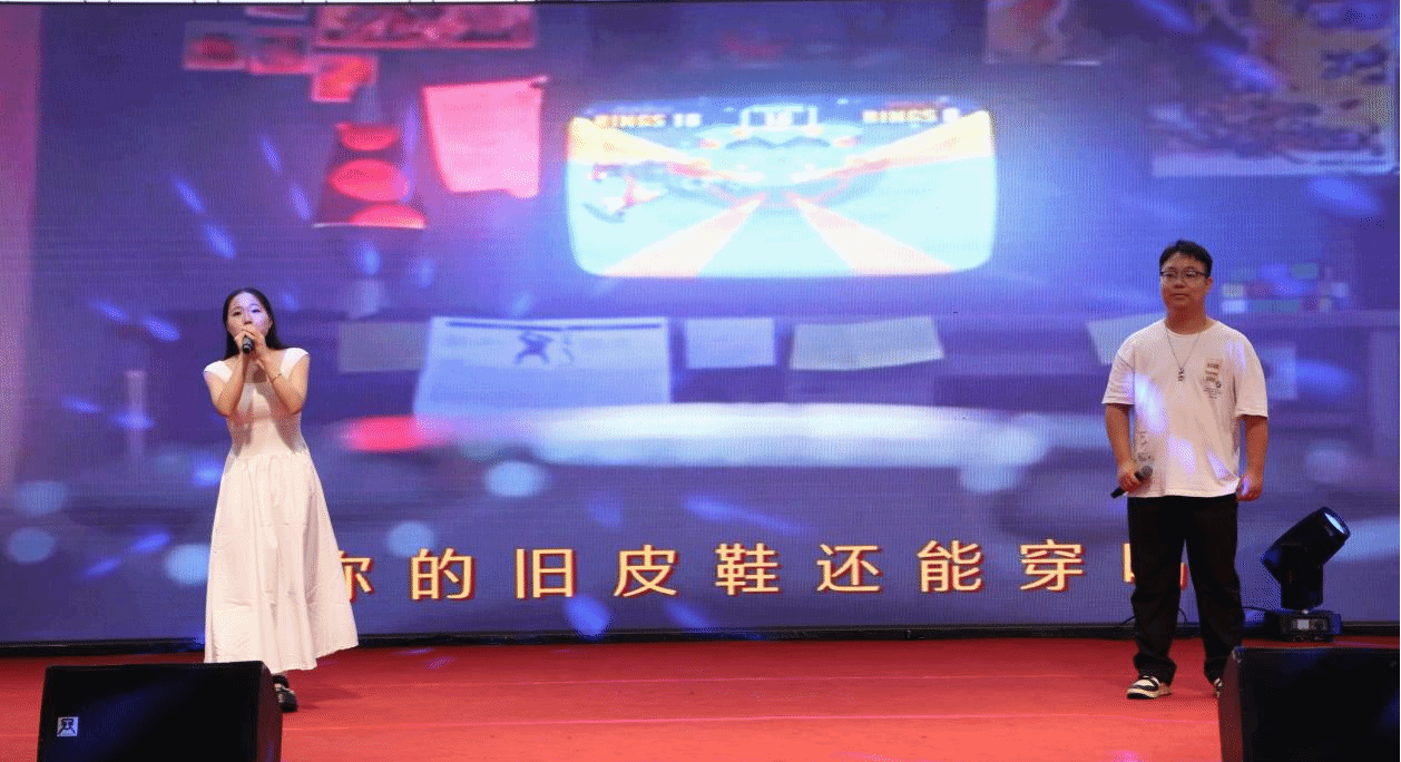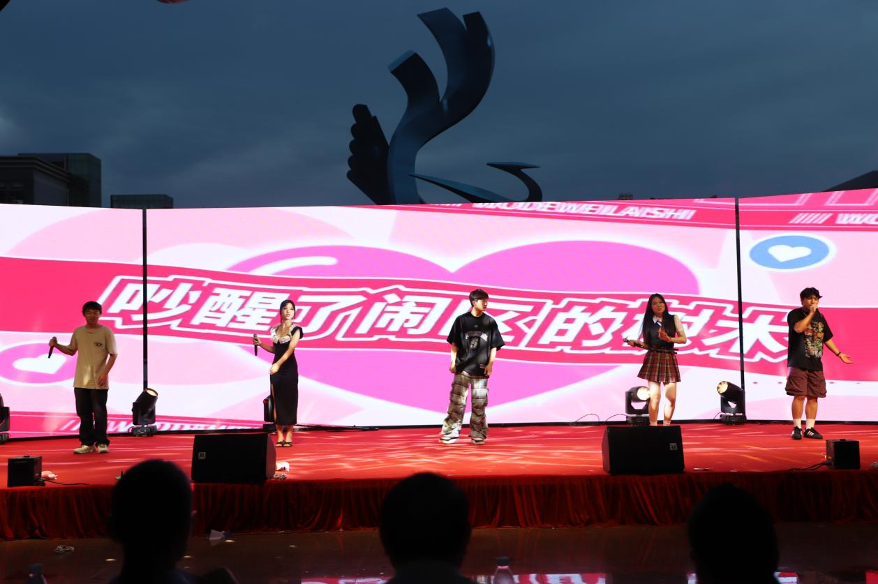 三院员工携手呈现《青春方程式》歌曲串烧,把校园点滴化作音符,熟悉的旋律引发全场大合唱,青春的共鸣在大鹏广场上久久激荡。