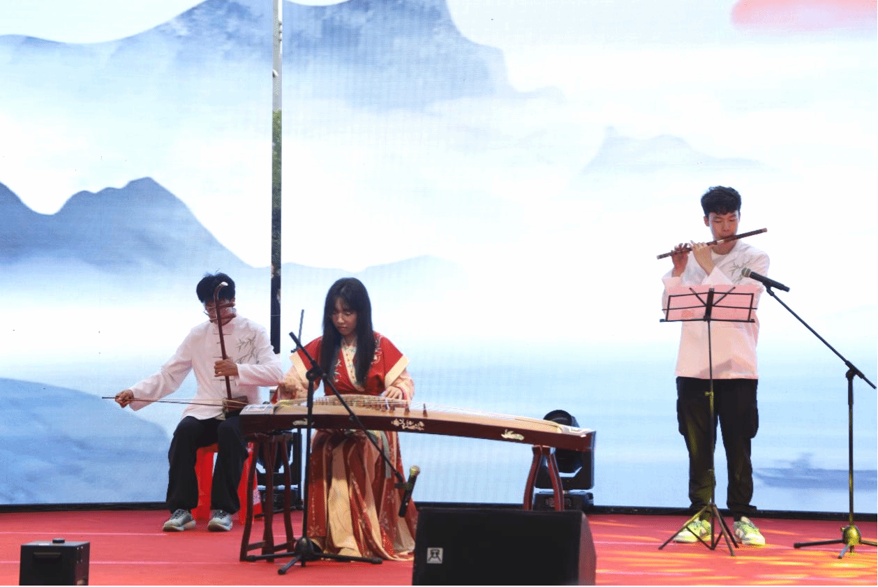 管理公司的乐器表演《寄明月》,古筝、竹笛、二胡三种传统乐器相互配合,以悠扬乐声编织诗意,将月光下的不舍与憧憬融入旋律,将“寄情明月,遥念往昔” 的情感诠释得淋漓尽致。